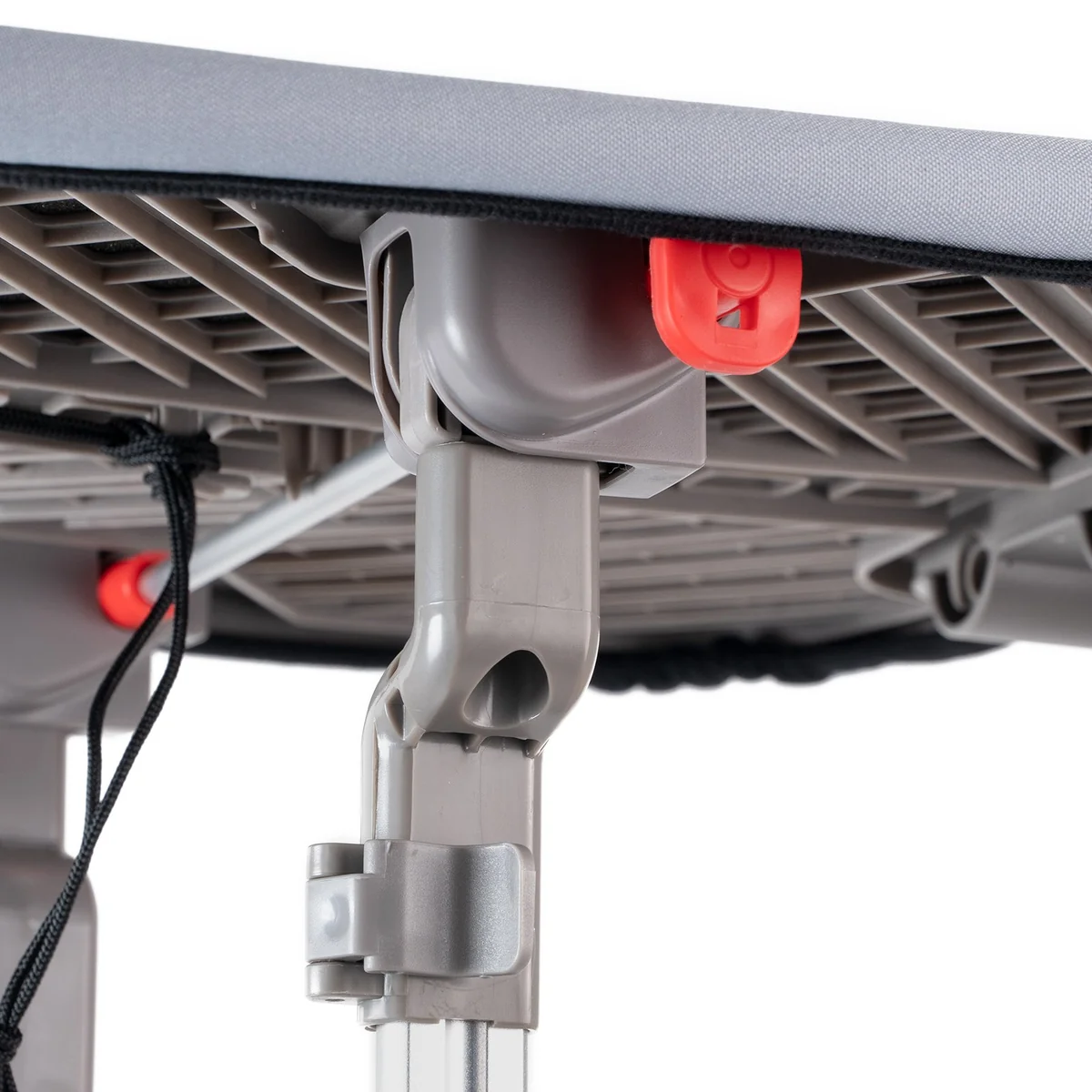 Гладильная доска размером 41*49 см имеет усиленный каркас и двухслойный материал, что гарантирует высокую износоустойчивость и долгий срок службы.