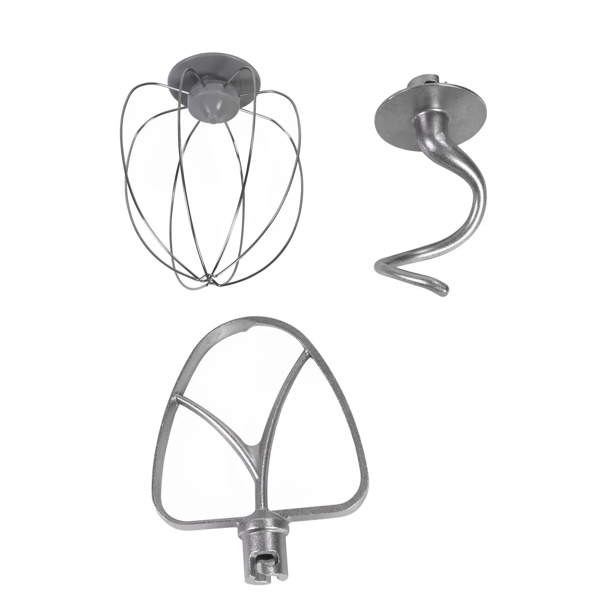 - Насадки: венчик для взбивания - из нержавеющей стали 18/10 / для перемешивания ингредиентов - из литого алюминия / для замешивания теста - из литого алюминия