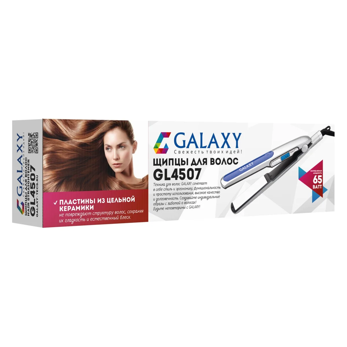 Выпрямитель для волос GALAXY GL4507 выполнен из цельнокерамических пластин, поэтому не повреждают структуру волос, сохраняя их гладкость и естественный блеск.