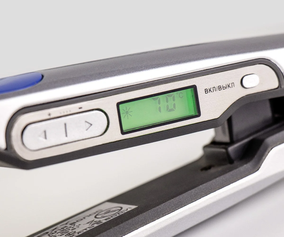 Утюжок для волос GALAXY GL4507 имеет жидкокристаллический дисплей в трех цветах с индикацией температурных режимов.