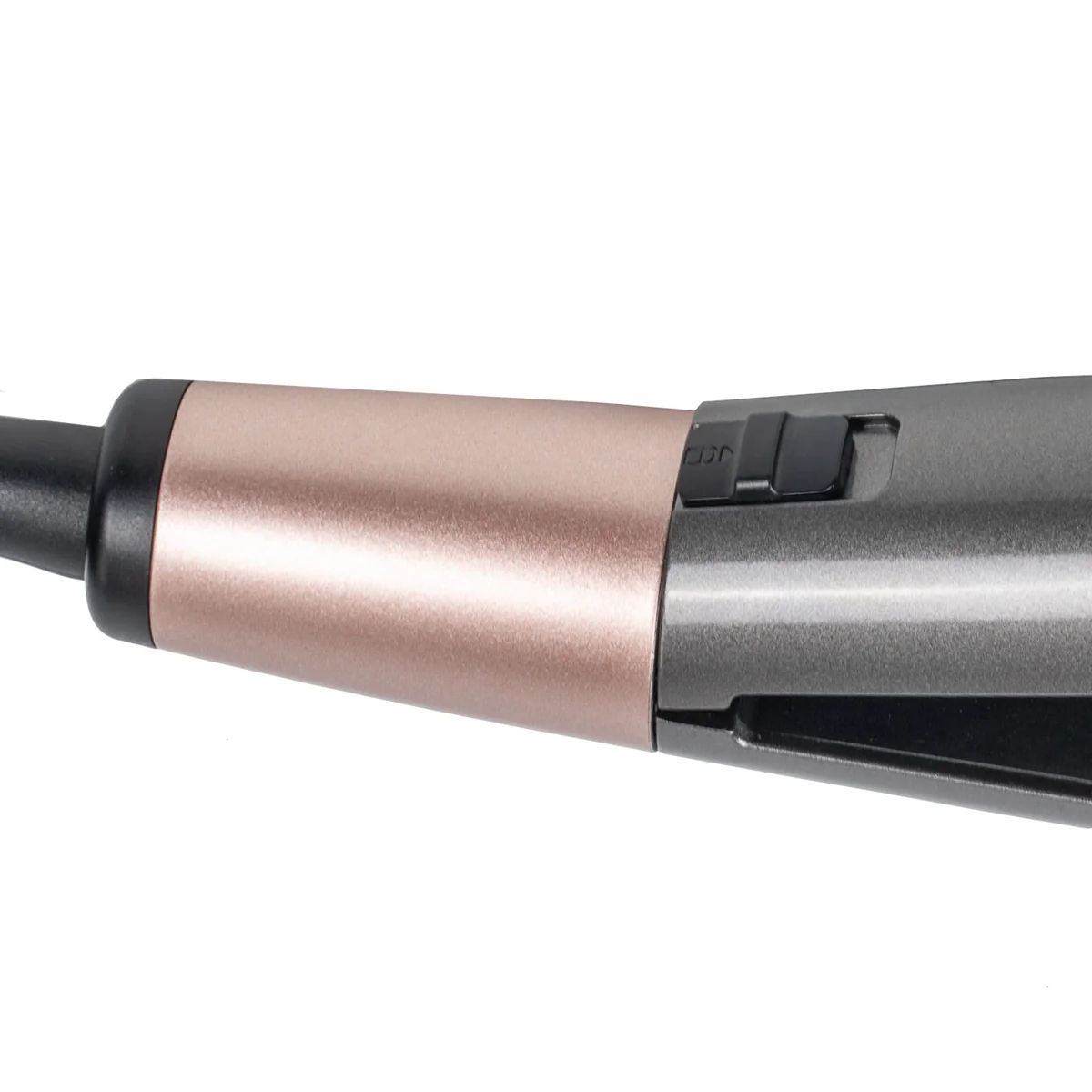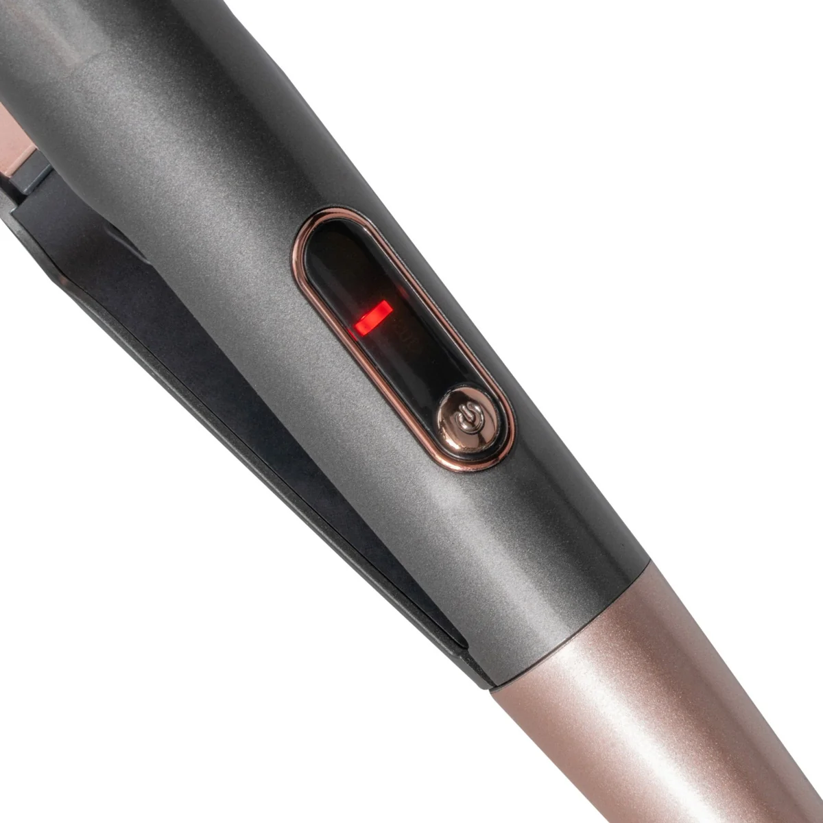 и либо плавно скользить вниз для выпрямления волос, либо поворачивать щипцы для завивки волос.