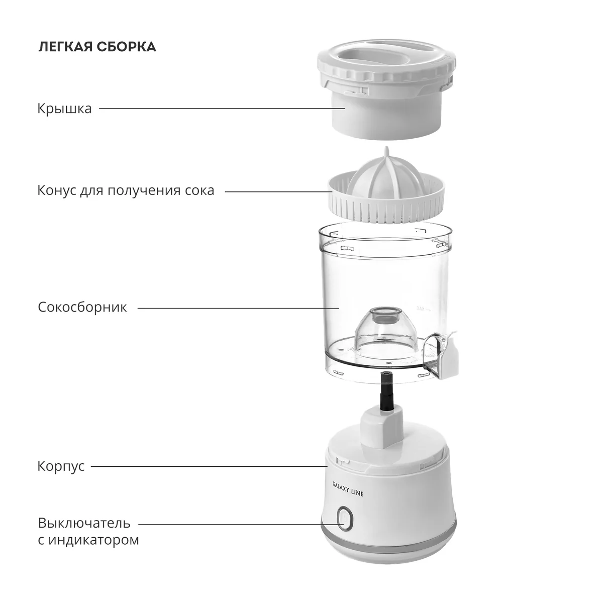 Соковыжималка аккумуляторная для цитрусовых GALAXY LINE GL0855 / белая