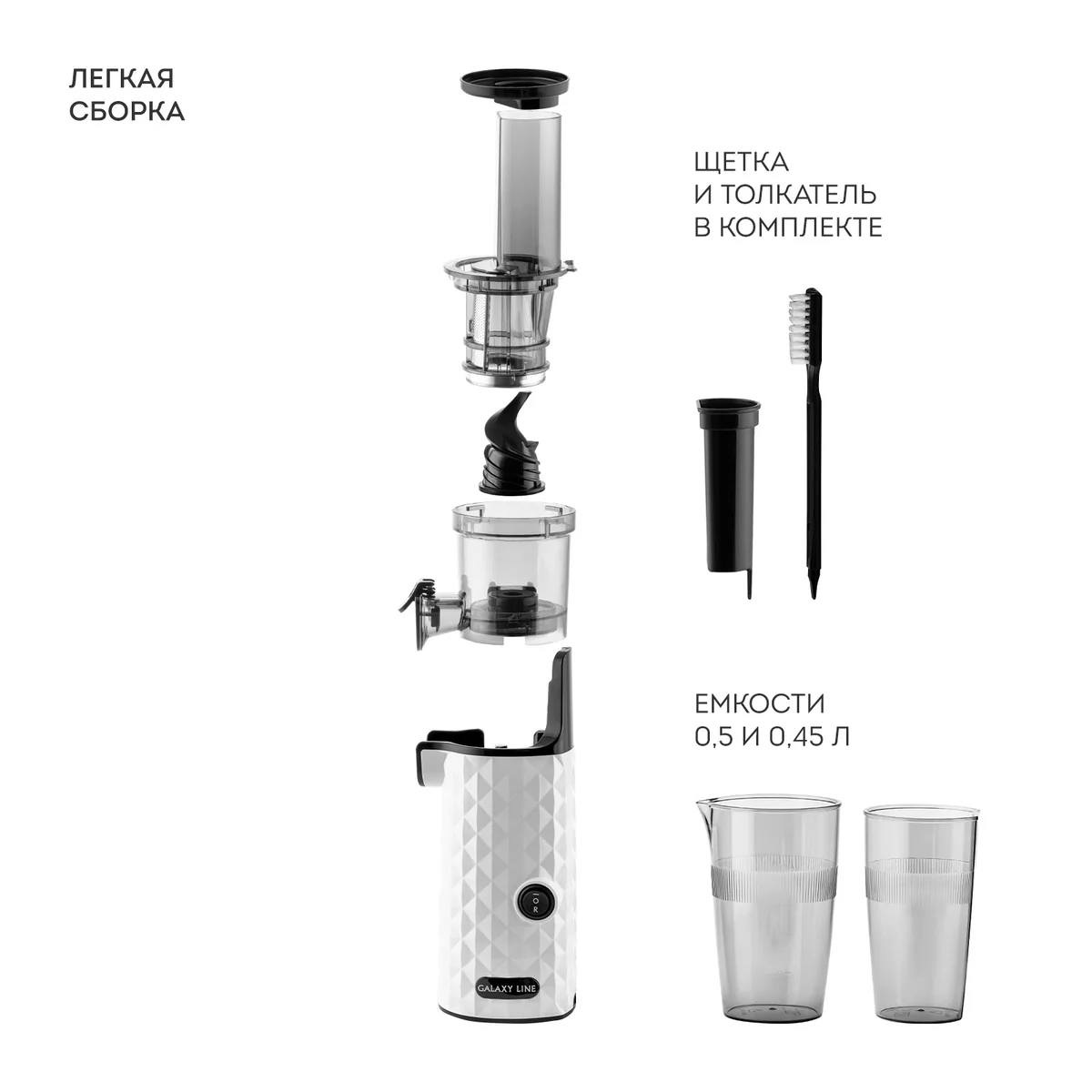 Вертикальная шнековая соковыжималка GALAXY LINE GL 0807 – прибор, предназначенный для ежедневного использования.