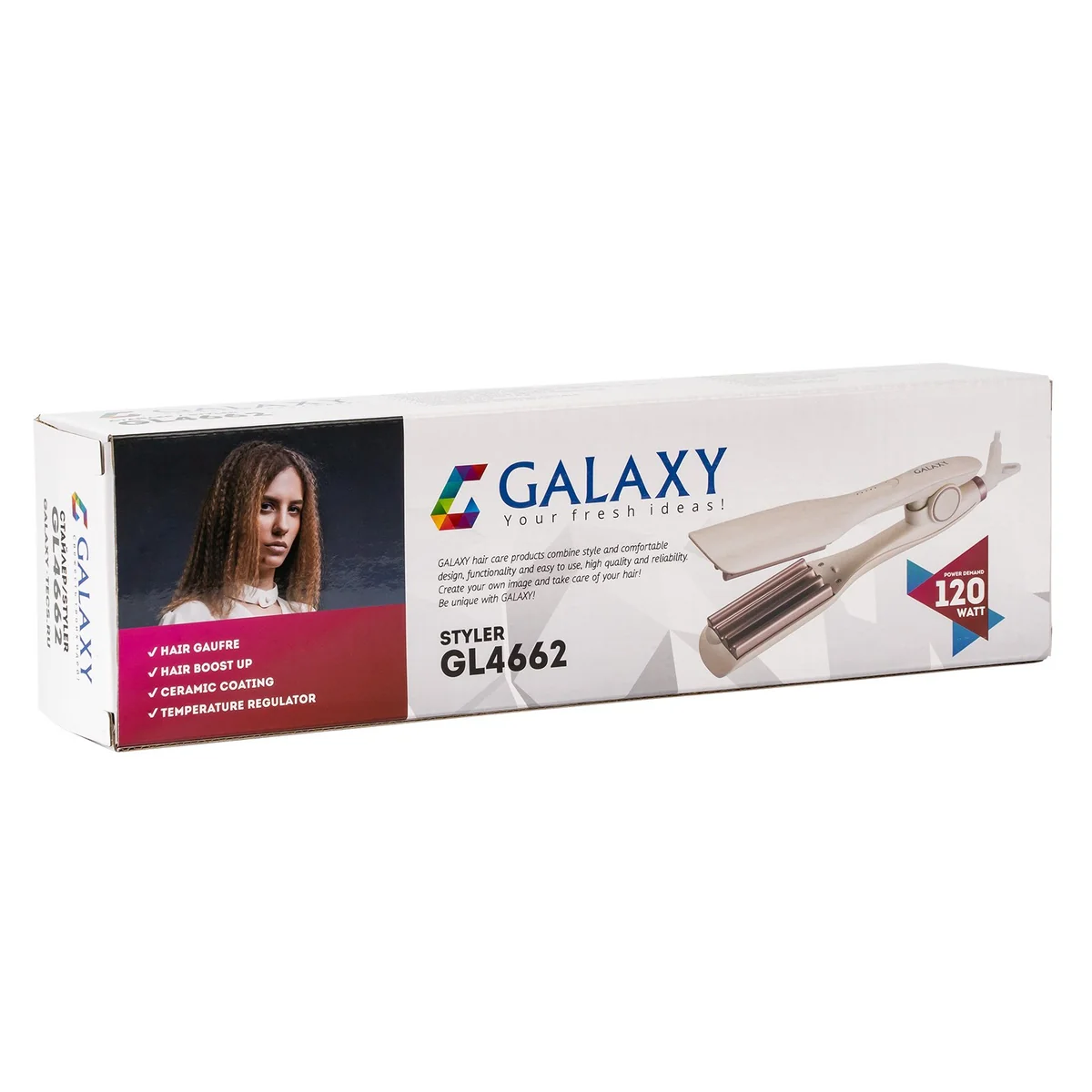 Стайлер GALAXY GL4662 помогает создать прикорневой объем и завивку гофре.