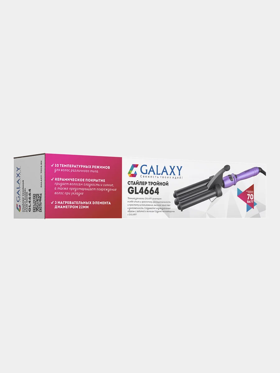 Тройной стайлер GALAXY LINE GL4664 предназначен для создания натуральных естественных волн и неповторимых локонов.