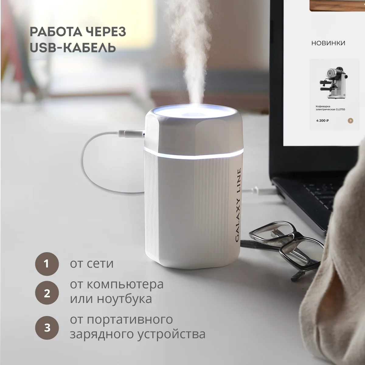 Компактный мини увлажнитель воздуха GALAXY LINE создает комфортный микроклимат в вашем доме.
