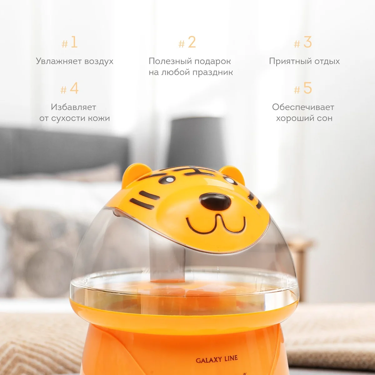 увлажнитель GALAXY LINE отключится автоматически. Прибор абсолютно безопасен, не выделяет горячего пара и не перегревается.