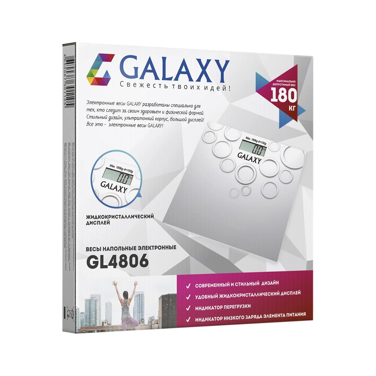 Электронные весы GALAXY GL4806 созданы для тех, кто следит за фигурой и здоровьем. Стильные и компактные весы выполнены из высокопрочного немецкого стекла.