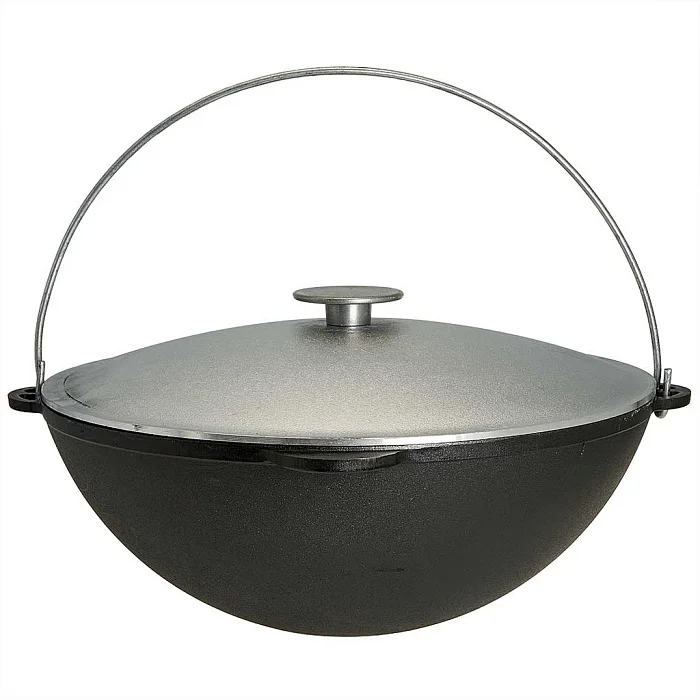 - Походный чугунный татарский литой казан с алюминиевой крышкой и специальной дужкой