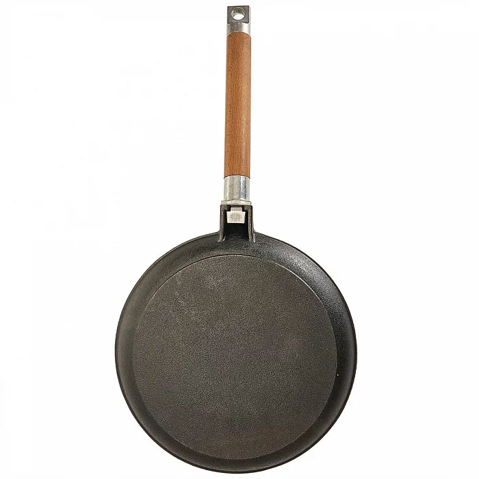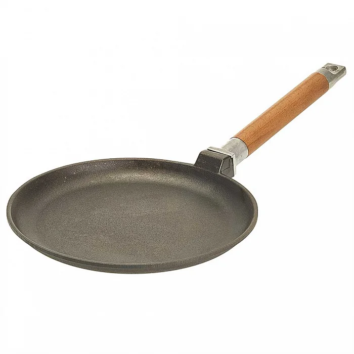 - Чугунная блинная сковорода со съемной деревянной ручкой без крышки