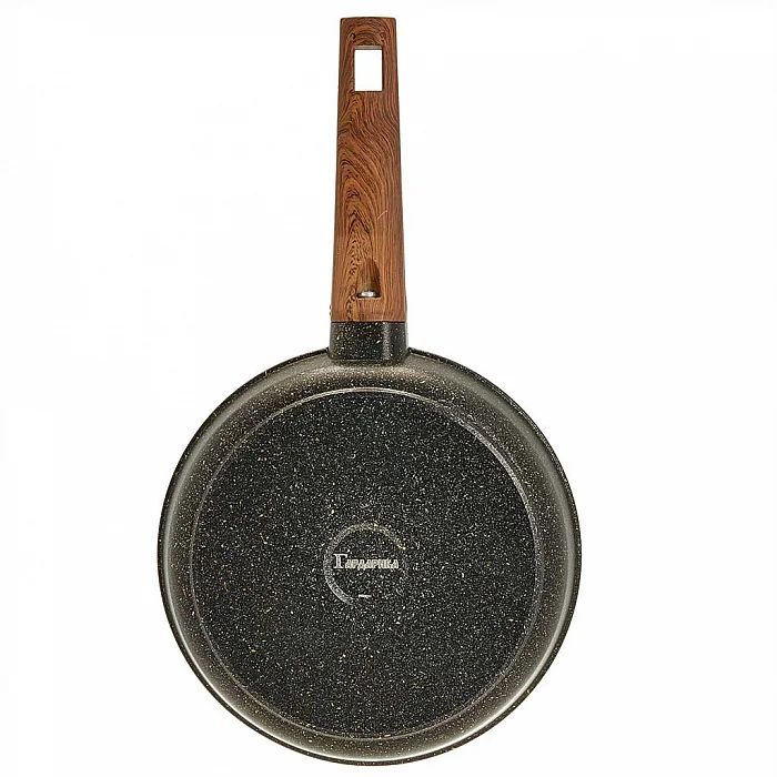 - Сковорода ручного литья алюминиевая с антипригарным покрытием, с несъемной ручкой