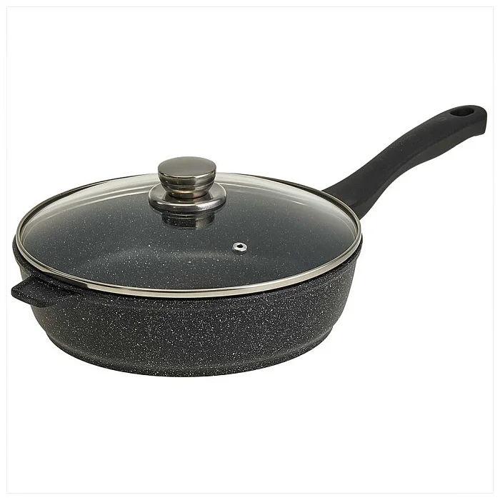 - Сковорода литая алюминиевая с антипригарным покрытием, со стеклянной крышкой