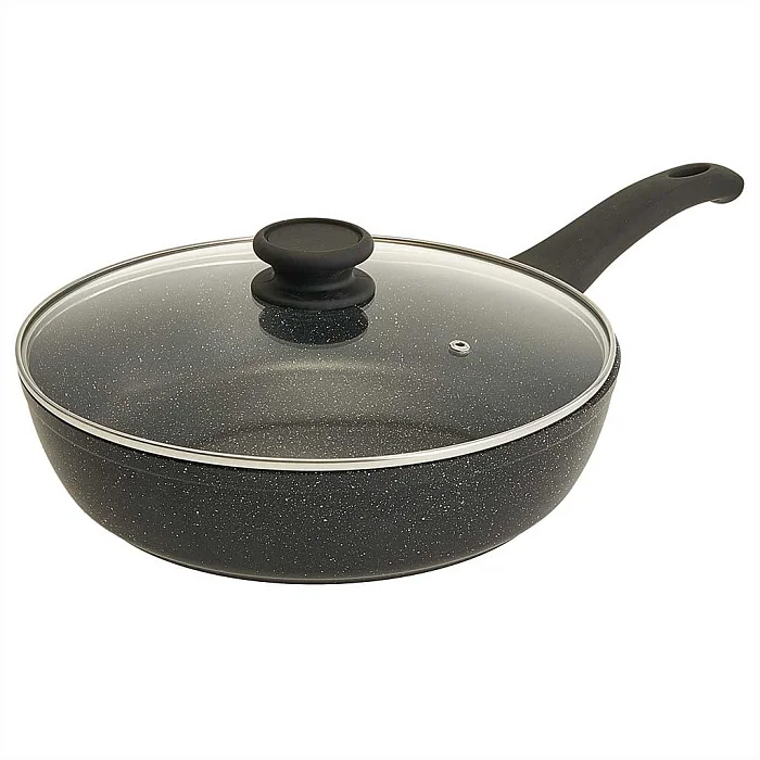 - Сковорода литая алюминиевая с антипригарным покрытием, со стеклянной крышкой