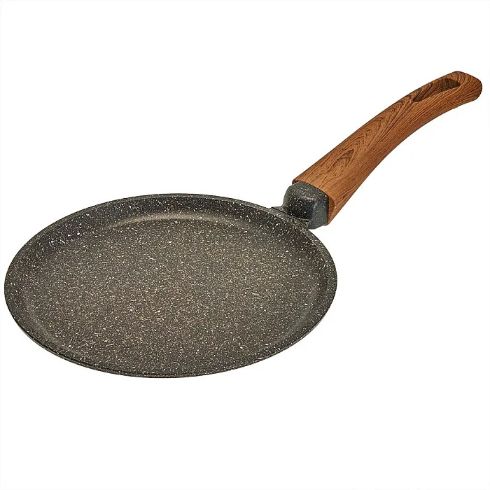 - Сковорода блинная литая алюминиевая с антипригарным покрытием и ручкой soft-touch