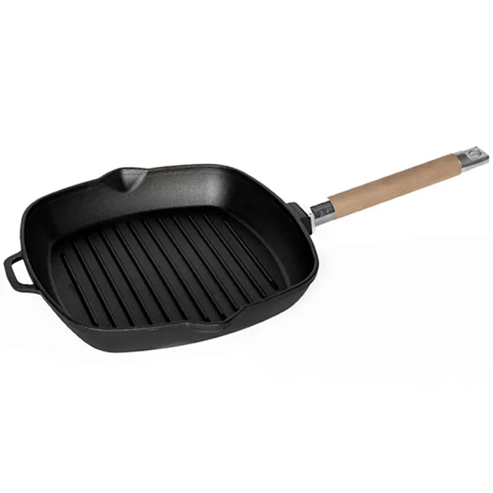 - Чугунная сковорода-гриль со съемной деревянной ручкой без крышки
