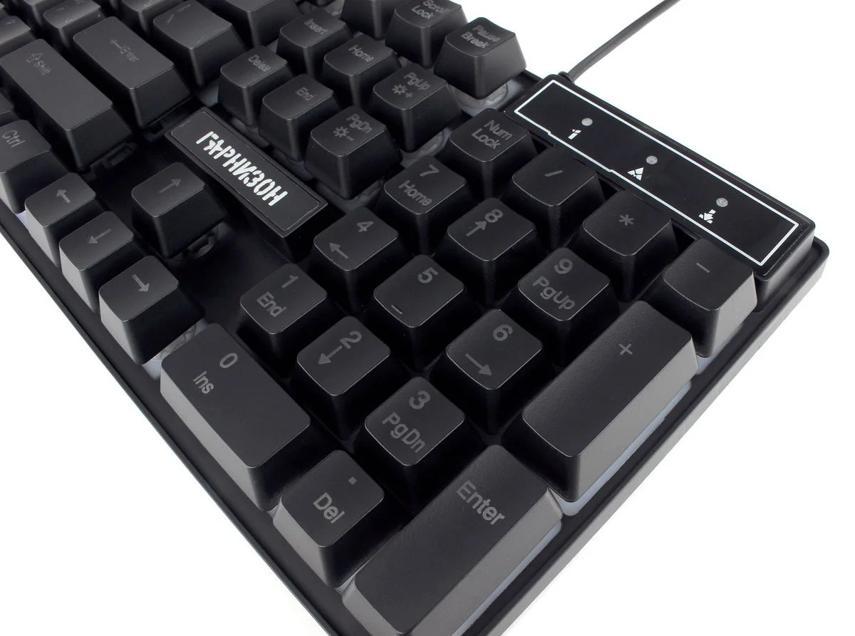 Игровая клавиатура с RGB-подсветкой Механизированные клавиши* 19 клавиш с защитой от фантомных нажатий 12 дополнительных функций для управления мультимедиа и открытия приложений *Механизированные клавиши дают при нажатии тактильные ощущения механической клавиатуры. Конструкция клавиш при этом - мембранная.