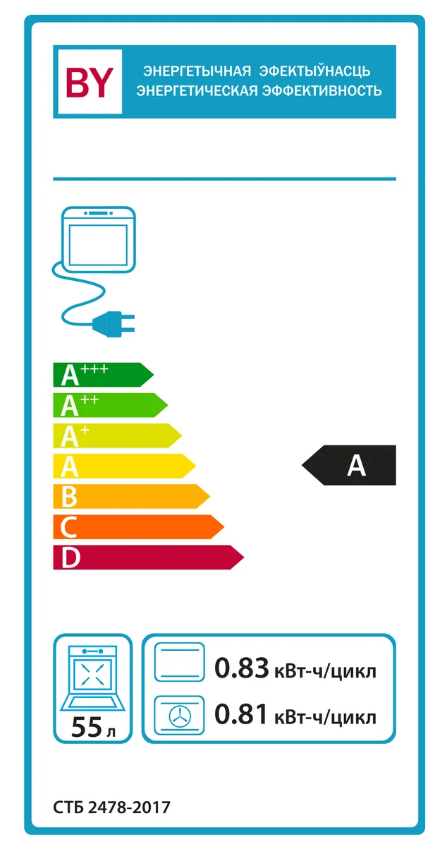 - Объем духовки, л: 55