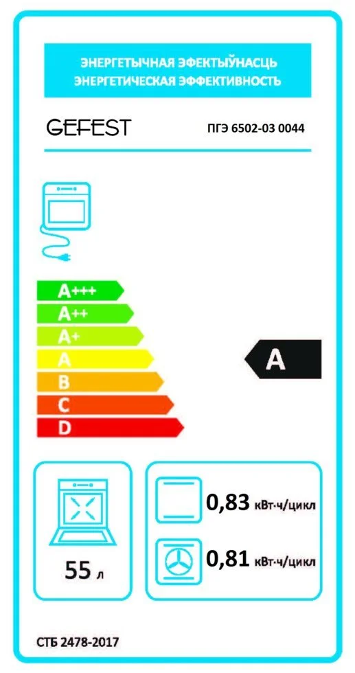 - Объем духовки, л: 55