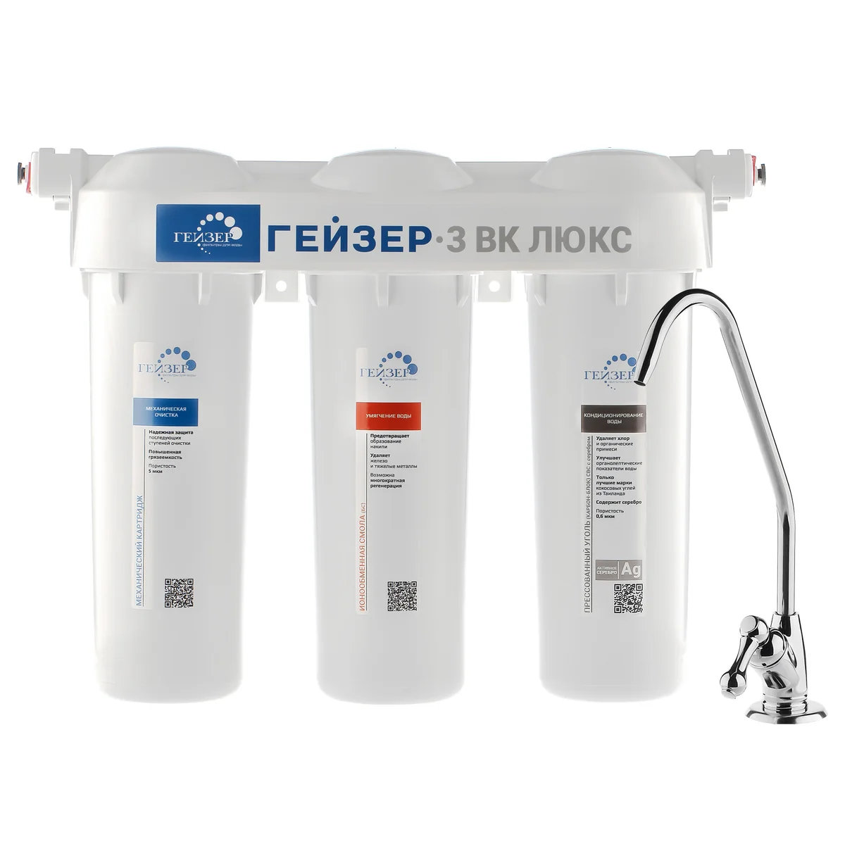 Фильтр Гейзер-3 ВК Люкс для жесткой воды разработан для регионов со средним уровнем минерализации (жесткая вода).