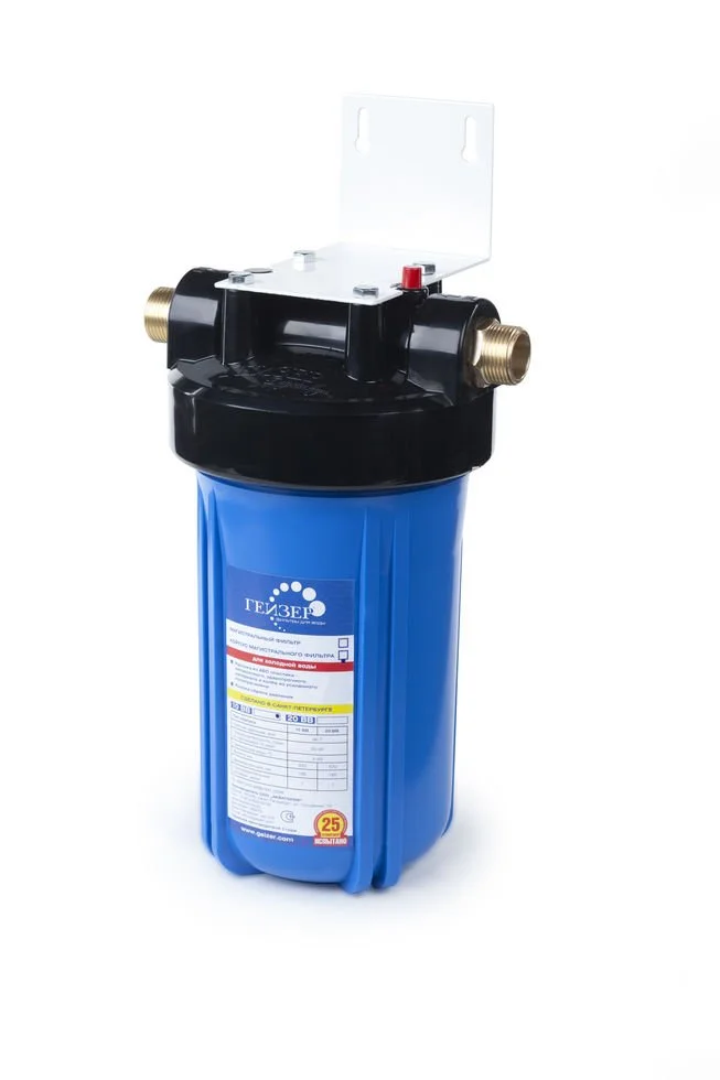 Корпус Гейзер 10BB изготовлен из синего полипропилена; крышка корпуса – из материала АВС в комплекте с латунными ниппелями. Корпус рассчитан на работу под давлением и установку на входе в систему холодного водоснабжения. В производстве корпусов используется только первичное сырье пищевого класса.