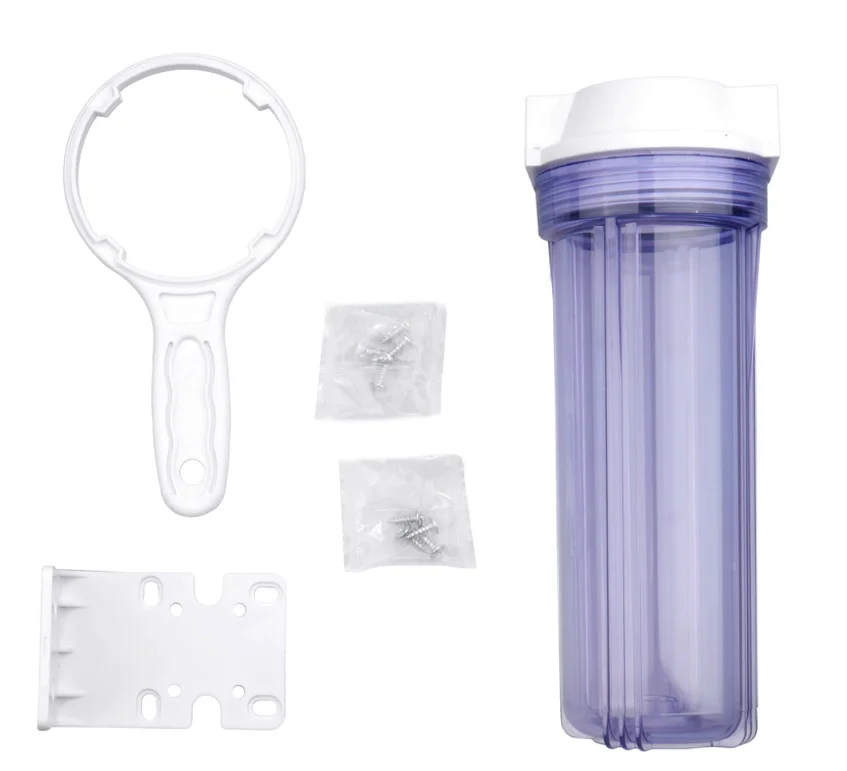 Корпус магистрального фильтра 10SL 1/2″ ВР прозрачный, без латунных вставок. Подходит для очистки холодной воды, может устанавливаться на вход в систему водоснабжения квартиры или дома.