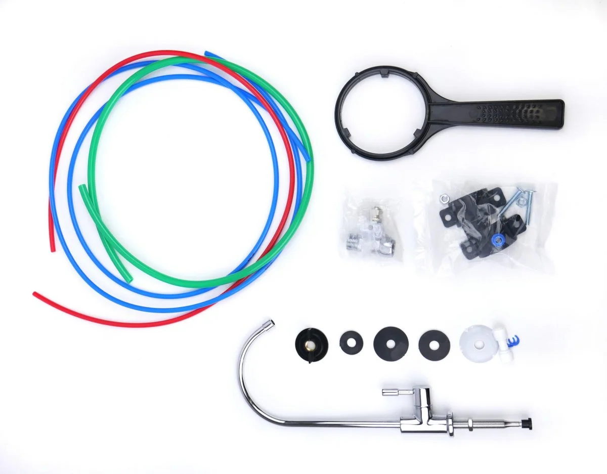 • Монтажный комплект (кран-тройник 1/2"-3/8"-1/2", дренажный хомут, трубка 3/8", трубка 1/4", ключ 10SL, ключ 3012)