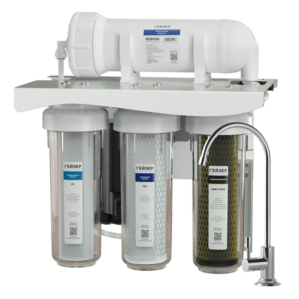 • 4 ступени очистки (2 предфильтра, 1 мембрана, 1 постфильтр)