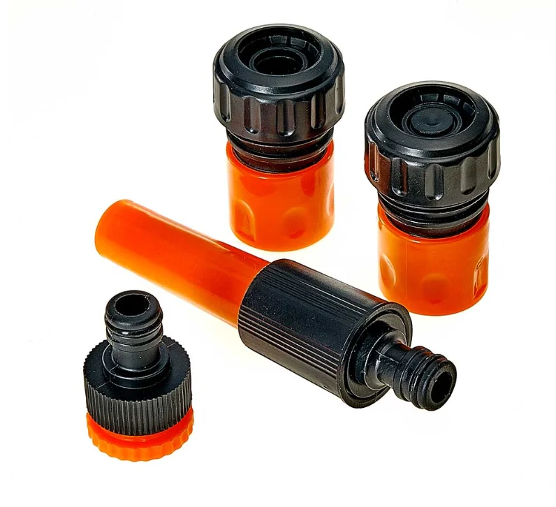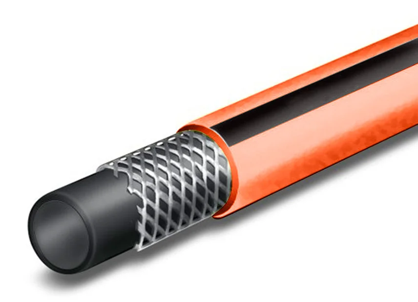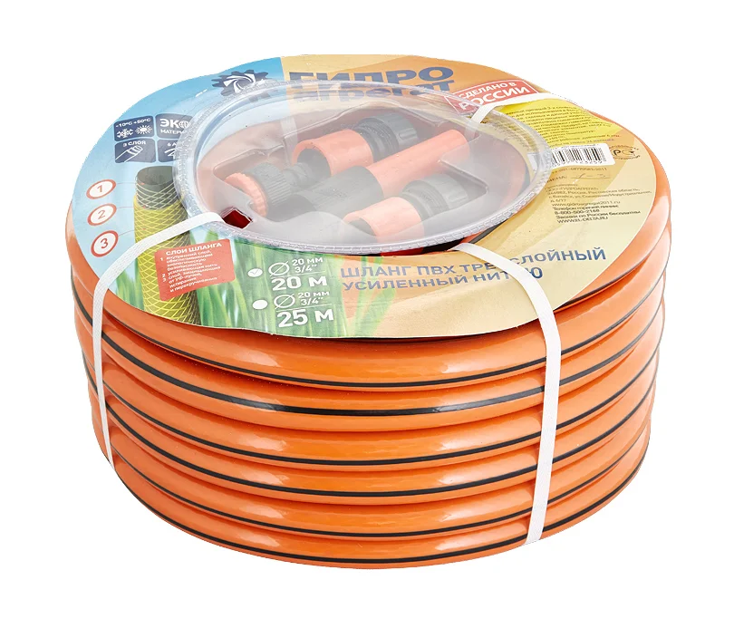 Шланг поливочный 3/4 дюйма, 20 м, армированный, 3-х слойный Гидроагрегат оранжевый с черной полосой (набор коннекторов)