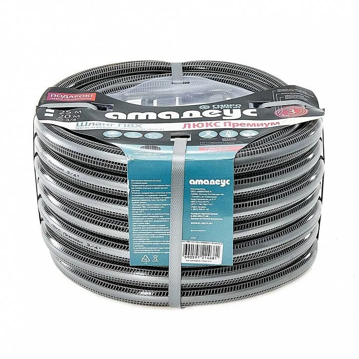 Шланг поливочный 3/4 дюйма, 20 м, армированный, 3-х слойный ГИДРОАГРЕГАТ АМАДЕУС ЛЮКС премиум (набор коннекторов )
