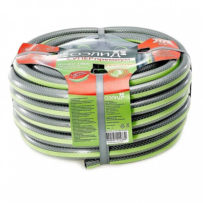 Шланг поливочный 3/4 дюйма, 20 м, армированный, 3-х слойный ГИДРОАГРЕГАТ ОЭЛИД СУПЕР премиум (набор коннекторов)