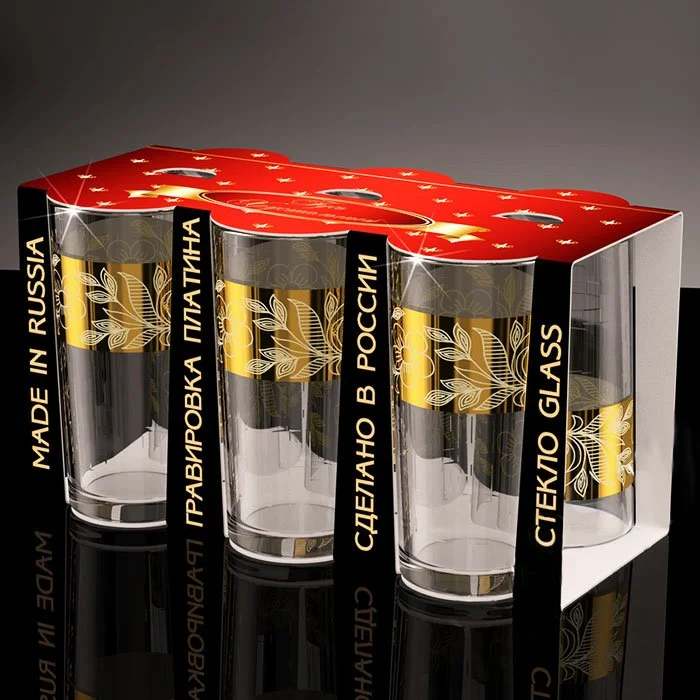 Набор стаканов 230мл./6пр. GLASSTAR Золотая полоса цветы GN56