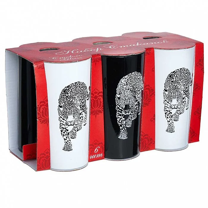 Набор стаканов 6 шт/230 мл GLASSTAR Леопард 1256/DPP черный/белый