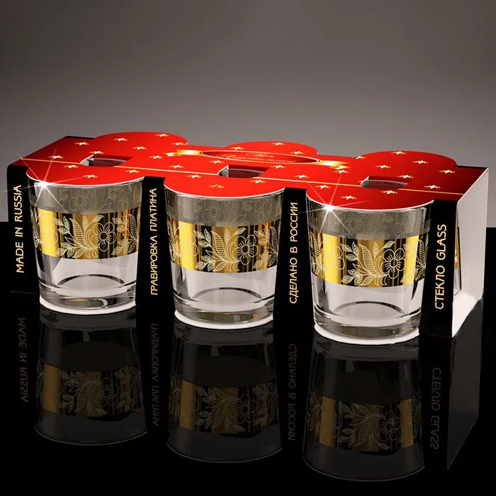 Стаканы 6шт./250мл. GLASSTAR Золотая полоса цветы GN40