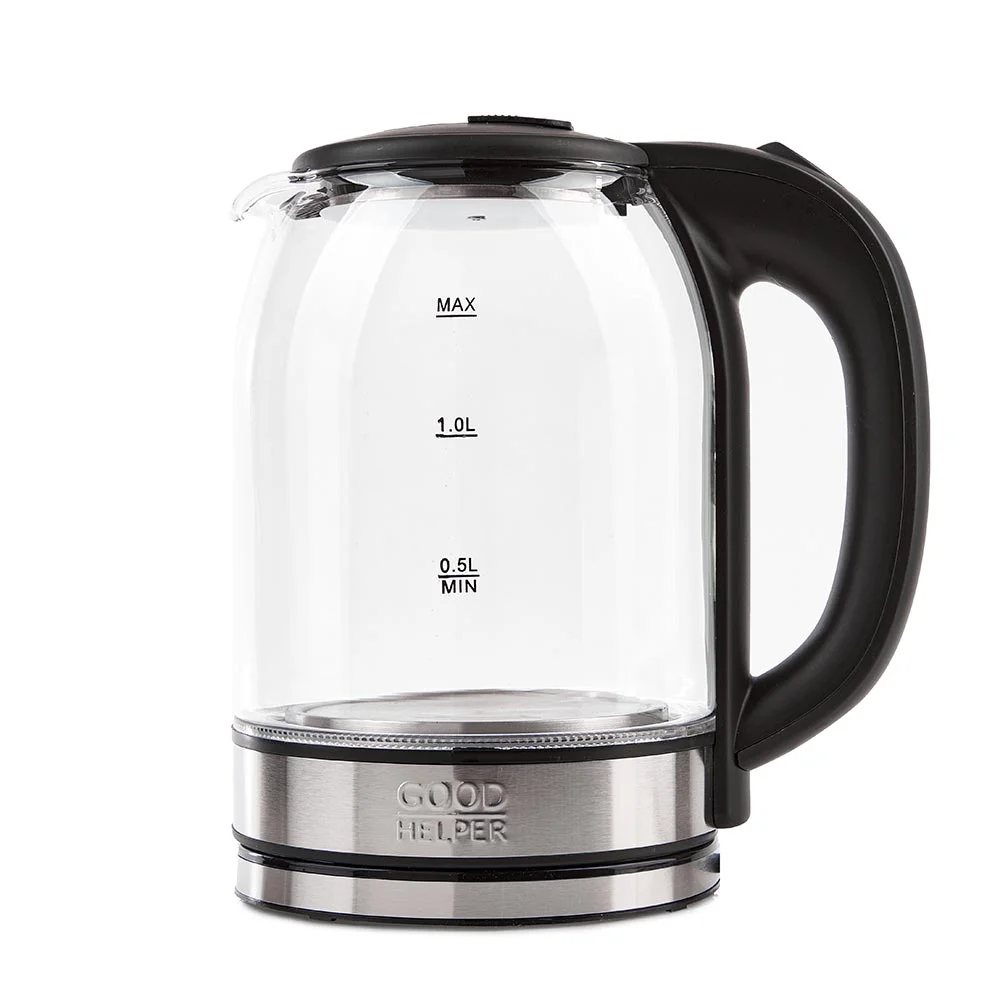 Электрический чайник Goodhelper KG-18B11, мощность которого составляет 1500 Вт, быстро кипятит воду.