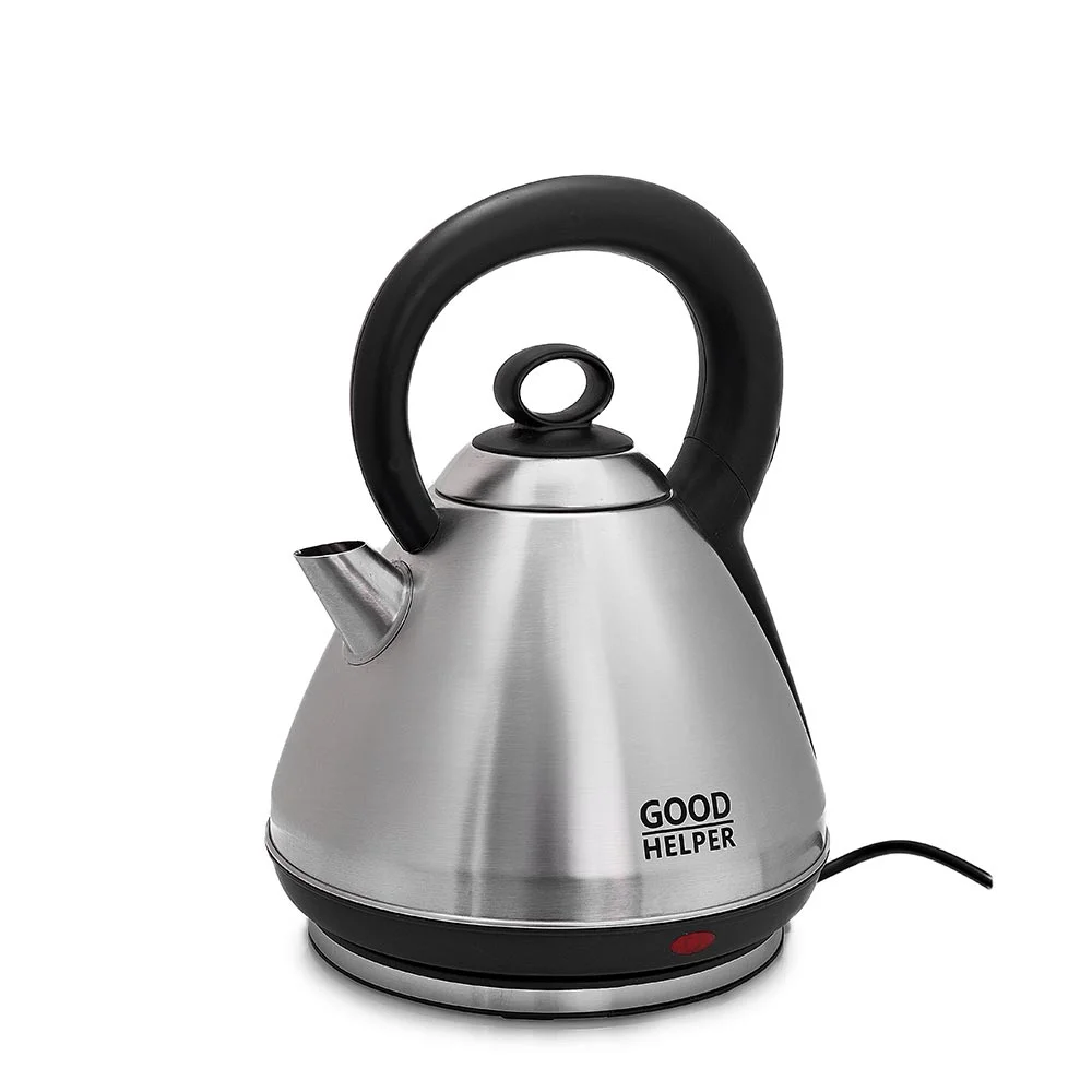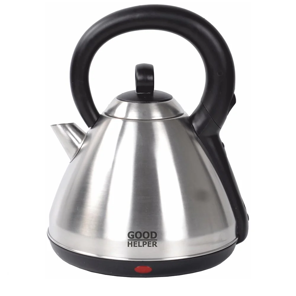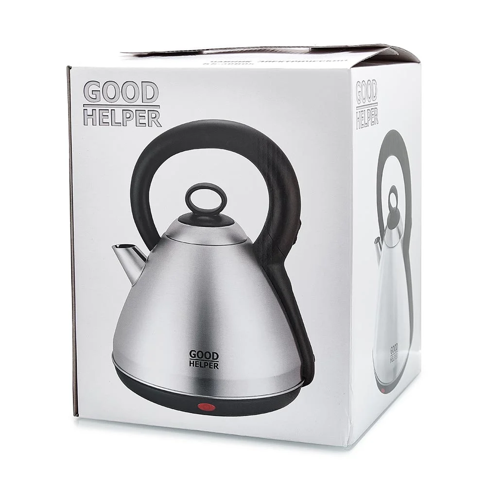 Полностью съемная крышка чайника позволяет легко наливать в него воду и следить за его чистотой. Материал корпуса — нержавеющая сталь марки SS201, благодаря чему прибор легко очищается и надолго сохраняет презентабельный облик. Дисковый нагреватель мощностью 1800 Вт из нержавеющей стали является оптимальным для достаточно быстрого кипячения воды даже максимально заполненного чайника, но при этом не наводит на грустные мысли о счете за электричество после его использования. Чайник вращается на подставке, что способствует его комфортной эксплуатации. Goodhelper KS-30B05 безопасен в использовании. В нем предусмотрено автоотключение при закипании, защитное отключение при перегреве или включении без воды, а его крышка надежно блокируется в процессе работы.