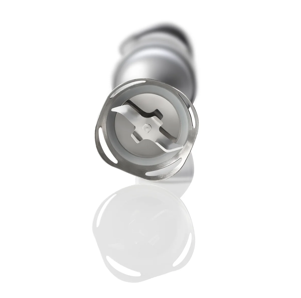 Простое приготовление вкусного пюре, соусов, смузи и суповВысококачественный нож с четырьмя лезвиями эффективно измельчает продукты. Высокий свод насадки предотвращает разбрызгивание во время работы. Насадка легко снимается для очистки.