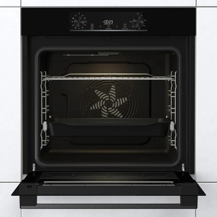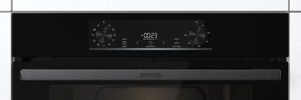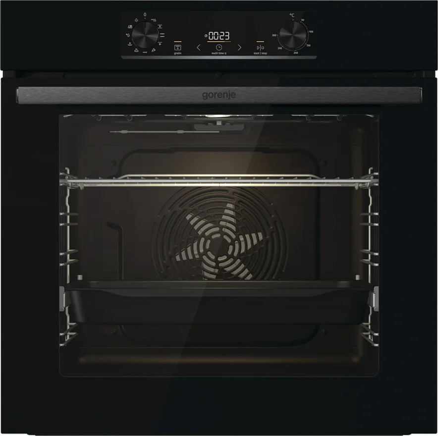 Электрический духовой шкаф Gorenje BO6735E05B — независимая модель с объёмом духовки 77 л и мощностью подключения 2,5 кВт.