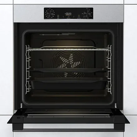 Gorenje BOSB6737E03X — это стильная модель в цвете нержавеющей стали и с инновационной формой внутренней камеры. Сводчатая форма HomeMade создана по подобию традиционной дровяной печи, что улучшает циркуляцию воздуха внутри.