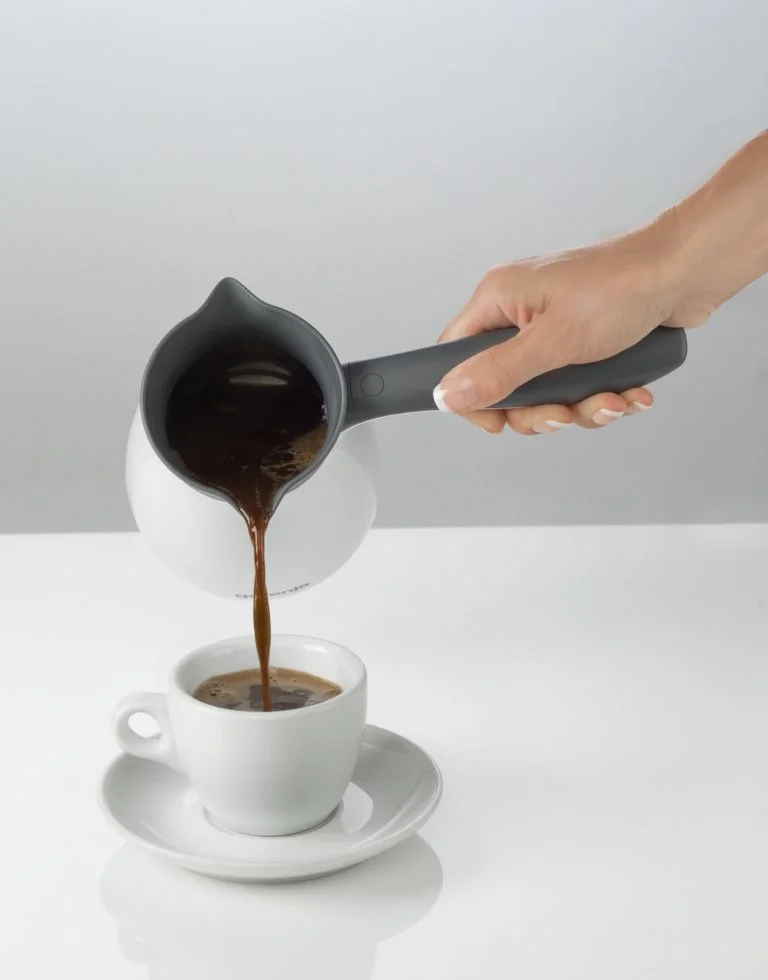 Электрическая турка Gorenje готовит до четырех чашек кофе одновременно. Угостите родных и друзей оригинальным кофе по-турецки или с добавлением сахара. Эту кофеварку можно также использовать как электрический чайник.