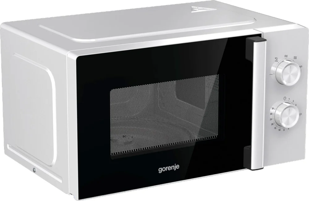 Микроволновая печь Gorenje MO20E1WH — простой прибор, удобный в использовании. СВЧ подойдет тем, кому не требуются лишние функции, а достаточно режимов приготовления, размораживания и подогрева пищи. Техника выполнена в современном дизайне, выглядит просто и лаконично, вписывается в интерьер любой кухни. Корпус белый с перламутровым отблеском, переключатели серебристые. Дверь контрастная — черная, с системой защиты от излучения. Ручка располагается на дверце, не нужно нажимать кнопки, чтобы открыть прибор.