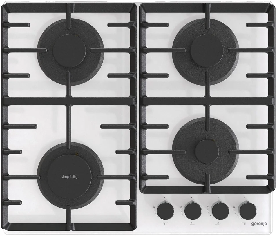 Независимая газовая варочная панель Gorenje GT642SYW — модель белого цвета с решетками ProGrids. Они сделаны таким образом, что линии-держатели образуют идеальную прямую. Это позволяет перемещать посуду с одной конфорки на другую, как по направляющим. Чугун обладает высокой термостойкостью, поэтому хорошо переносит воздействие огня.