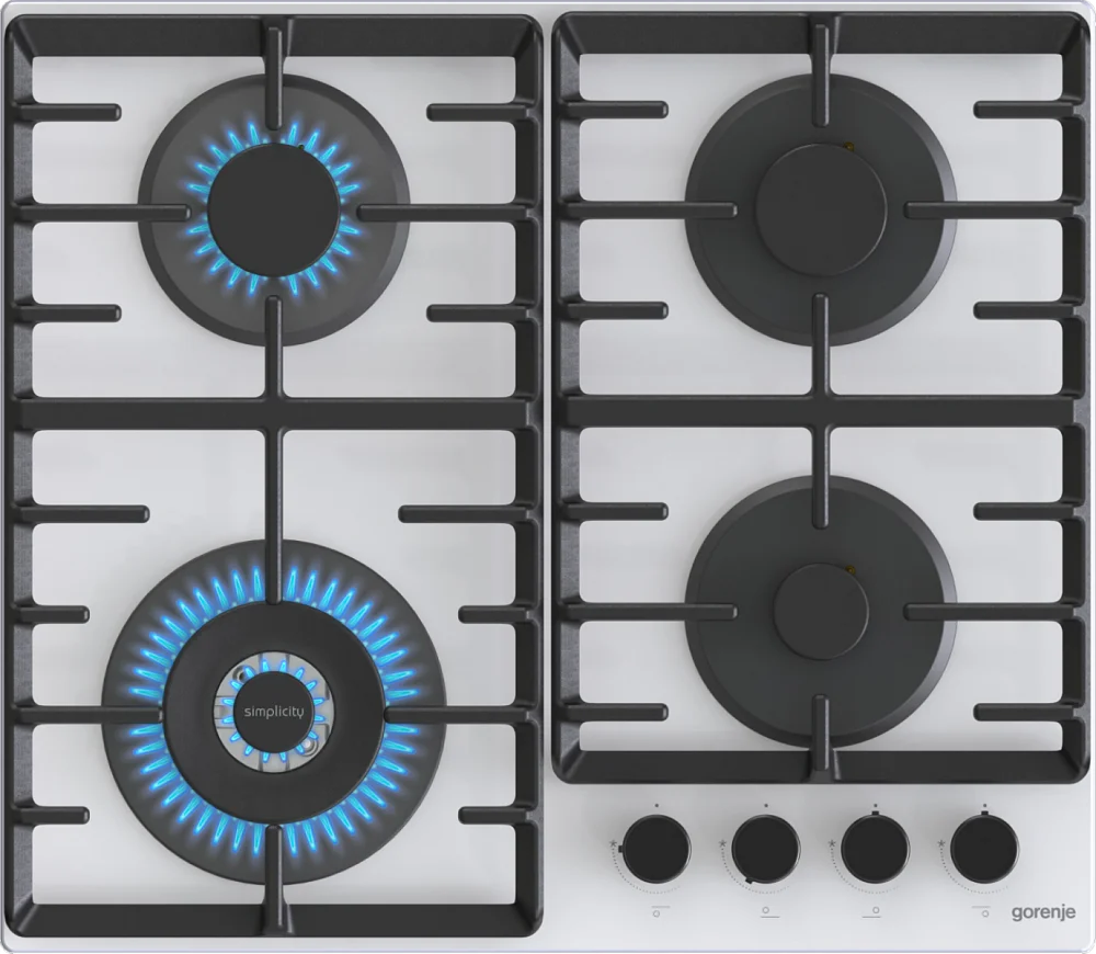 Независимая газовая варочная панель Gorenje GTW642SYW — модель «газ на стекле» из дизайнерской линейки Simplisity.