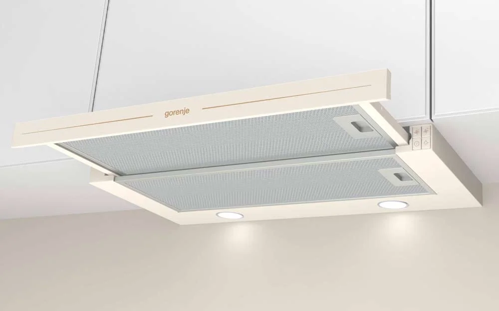 Вытяжка Gorenje BHP62CLI произведена в Польше и имеет современный и уникальный дизайн. Она выполнена в цвете «Нержавеющая сталь», а по периметру она имеет оттенок слоновой кости. Такая модель украсит вашу кухню и придаст ее особую индивидуальность. Техника встраивается в шкаф, поэтому видной часть останется только панель управления, корпус и подсветка. Ее удобно встраивать даже в небольшую кухню за счет небольших габаритов 17×60×31,5-45,5 см.