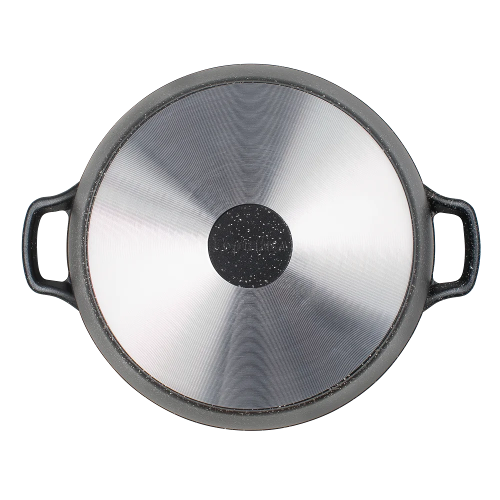 Литая алюминиевая кастрюля с антипригарным покрытием ТМ Горница –находка для создания кулинарных шедевров! Кастрюля антипригарная подходит для газовых, электрических и стеклокерамических плит. Электрическая духовка либо газовая также допускают использование кастрюли в процессе готовки. Идеальна для приготовления мяса, овощей, грибов, супов, борщей и т.д. «Гранит». Коллекция «мраморной посуды» с улучшенным четырёхслойным антипригарным покрытием. Дополнительный слой с мраморным эффектом увеличивает износостойкость и создаёт оригинальный оттенок чёрного мрамора. Антипригарная кастрюля изготовлена из пищевого алюминия без канцерогенных веществ. Имеет толстые стенки и дно для обеспечения равномерного распределения тепла в процессе приготовления еды. Кастрюля металлическая имеет антипригарное покрытие на водной основе, которое создает защитный барьер между чистым алюминием и пищевыми продуктами. Кастрюли с антипригарным покрытием легко мыть благодаря их гладкой поверхности.