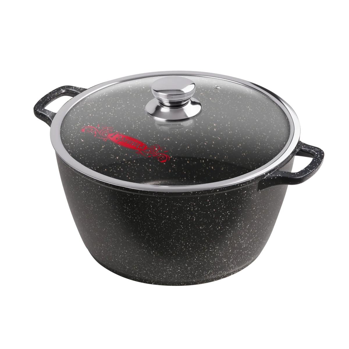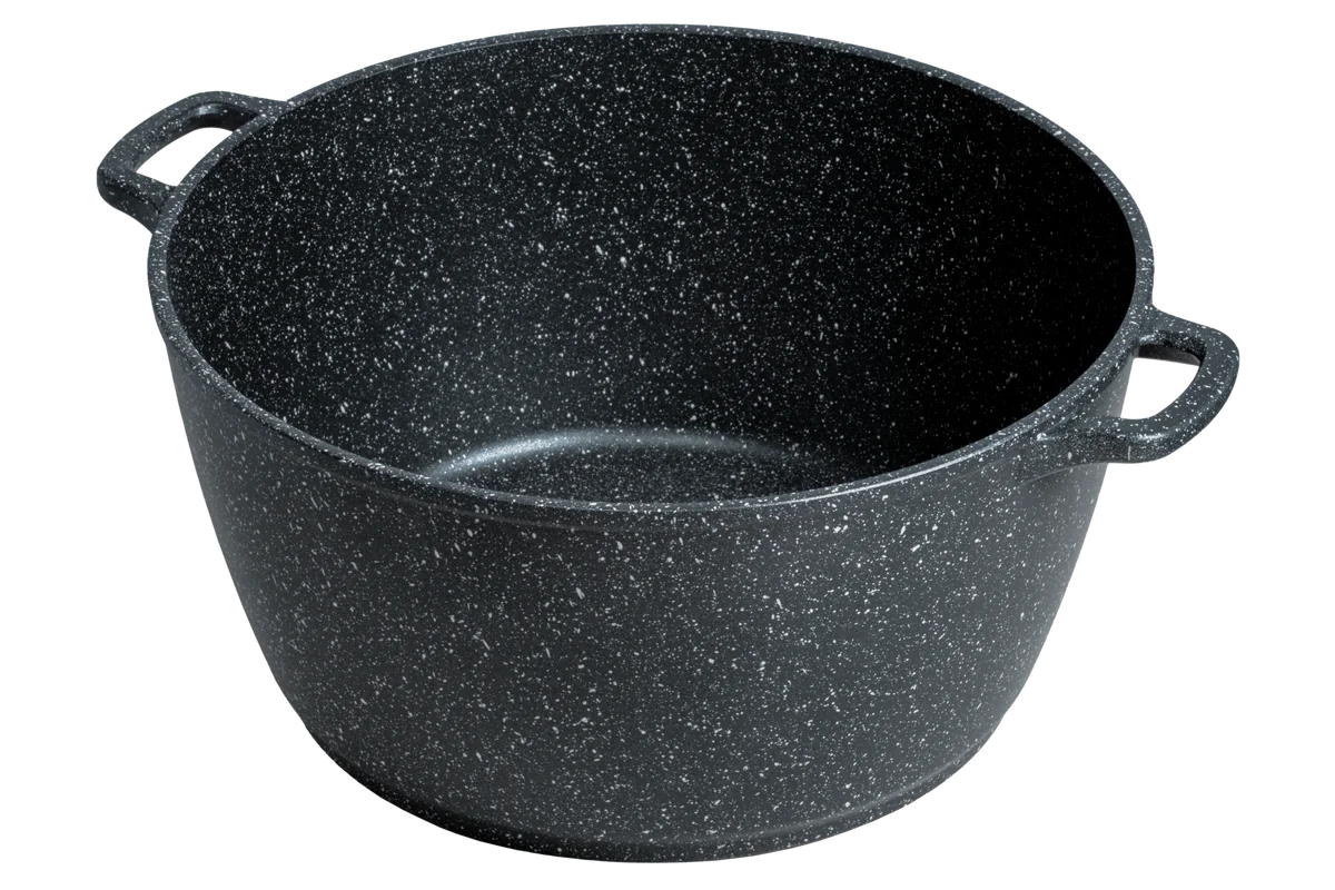 «Гранит». Коллекция посуды с улучшенным четырёхслойным антипригарным покрытием. Дополнительный слой с мраморным эффектом увеличивает износостойкость и создаёт оригинальный оттенок чёрного мрамора.