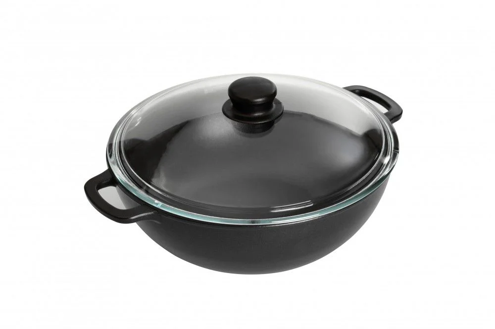 Производство литой алюминиевой посуды происходит методом кокильного литья, так называется метод фасонной отливки в металлические формы – кокили. По сравнению с иными методами литья, при кокильном литье идет наполнение расплавленным металлом формы и происходит процесс затвердевания без участия внешних сил, только действует естественная сила тяжести. После того, как масса остынет, кокиль раскрывают и извлекают готовую форму изделия, которая отправляется на механическую обработку и нанесение антипригарного покрытия.