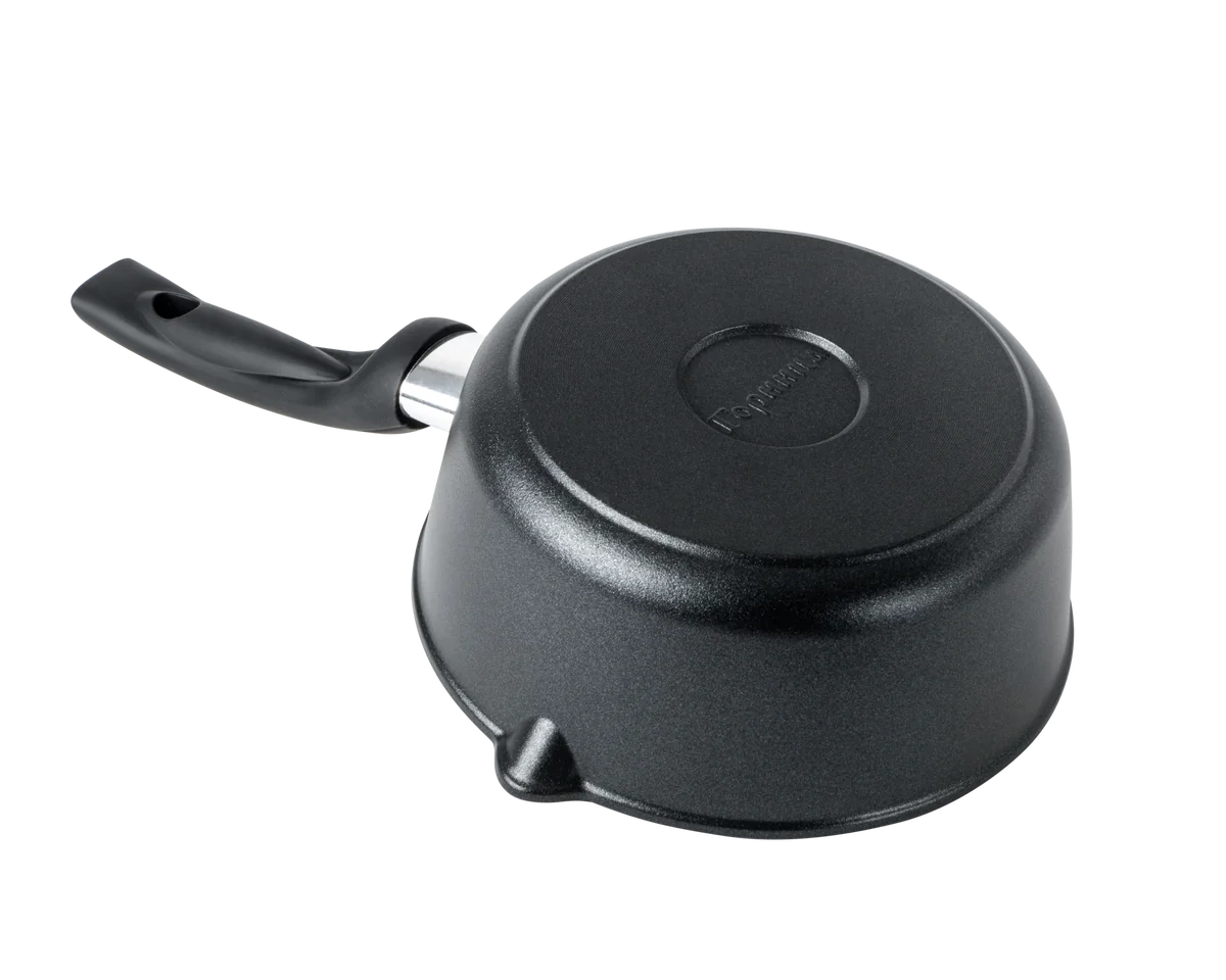 А ещё в ковше лучше получаются соусы. «Классик». Базовая коллекция с однотонным чёрным покрытием. Трёхслойное антипригарное покрытие гарантирует долгий срок службы и качественное приготовление блюд. Литой пищевой алюминий не имеет канцерогенных веществ и посторонних запахов. Толстые стенки и дно обеспечивают равномерное приготовление блюда. Посуда не деформируется при нагревании.