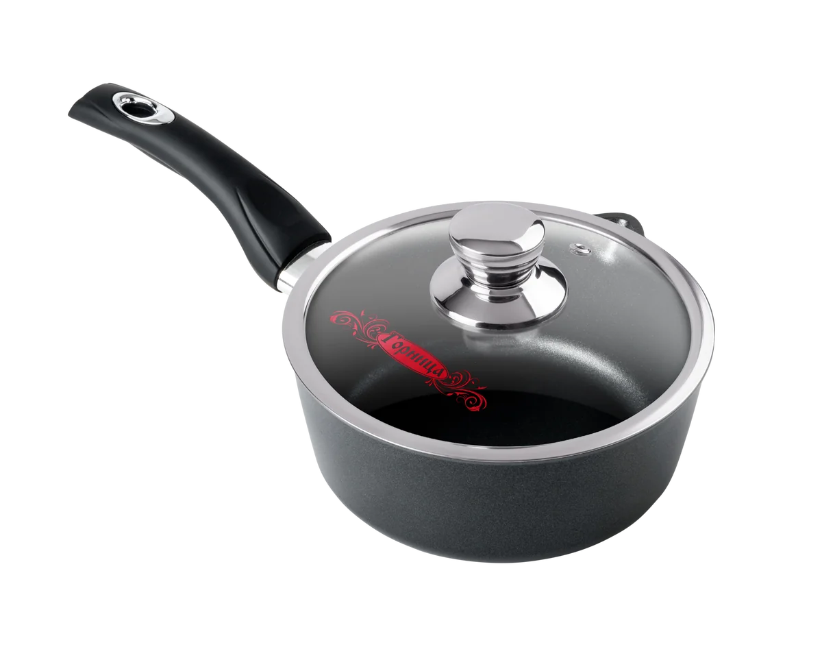 А ещё в ковше лучше получаются соусы. «Классик». Базовая коллекция с однотонным чёрным покрытием. Трёхслойное антипригарное покрытие гарантирует долгий срок службы и качественное приготовление блюд. Литой пищевой алюминий не имеет канцерогенных веществ и посторонних запахов. Толстые стенки и дно обеспечивают равномерное приготовление блюда. Посуда не деформируется при нагревании.
