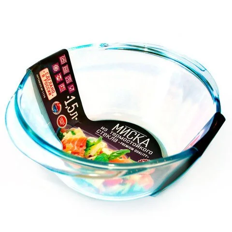 - Миска с ручками из высококачественного жаропрочного стекла, выдерживающего высокие и низкие температуры, а также перепады температур