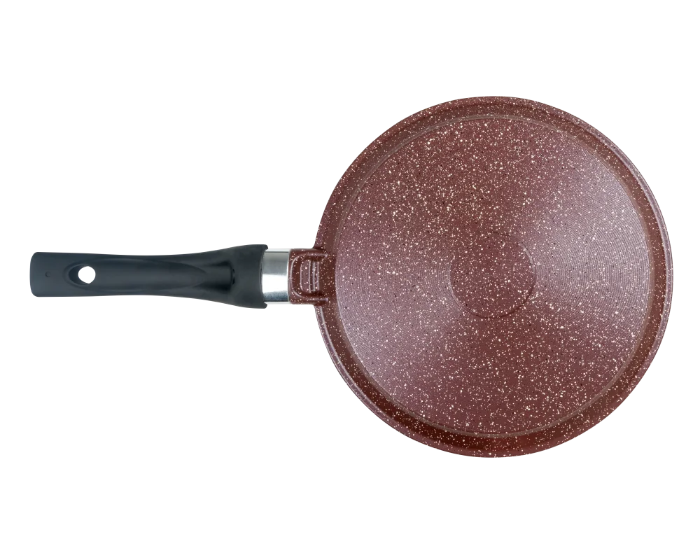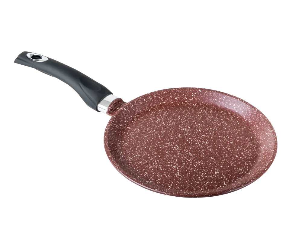 Литая алюминиевая блинная сковорода с антипригарным покрытием подходит для газовых, электрических и стеклокерамических плит.